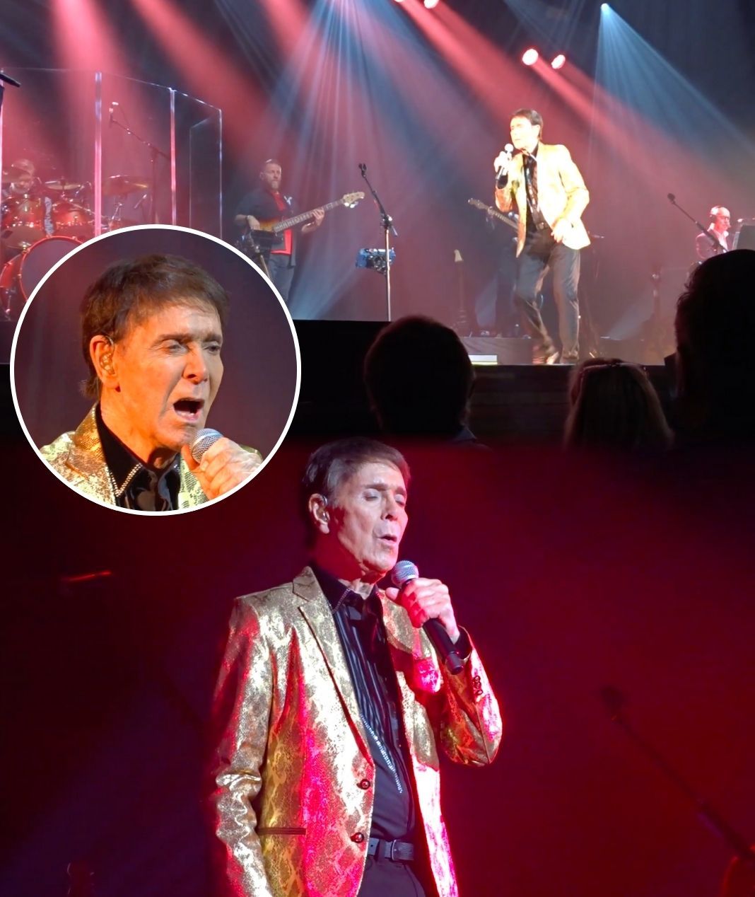As the first notes rose from the orchestra, the crowd of thousands quieted to absolute silence. Some stood with their hands clasped. Others simply gazed forward, tears visible under the dimmed lights. Cliff sang the opening lines with a tenderness that felt almost whispered, drawing the audience into the song’s quiet power. His voice, steady and clear, carried the same purity that has accompanied him through a career spanning more than six decades.