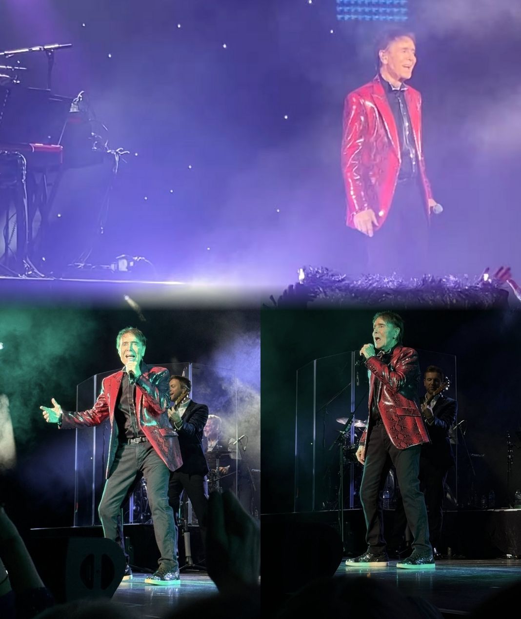 In the snippet, the Brighton crowd is already buzzing. Hands are raised, fans lean forward in their seats, and the energy in the room hints at a concert filled with joy and celebration. Then Cliff steps into the spotlight — poised, smiling, elegant as ever — and the first line glides from his voice with surprising clarity. His tone, though gently seasoned with age, still carries that unmistakable brightness that defined his early pop years. There’s a confidence in his phrasing, a relaxed smoothness that comes only from a lifetime of performing.