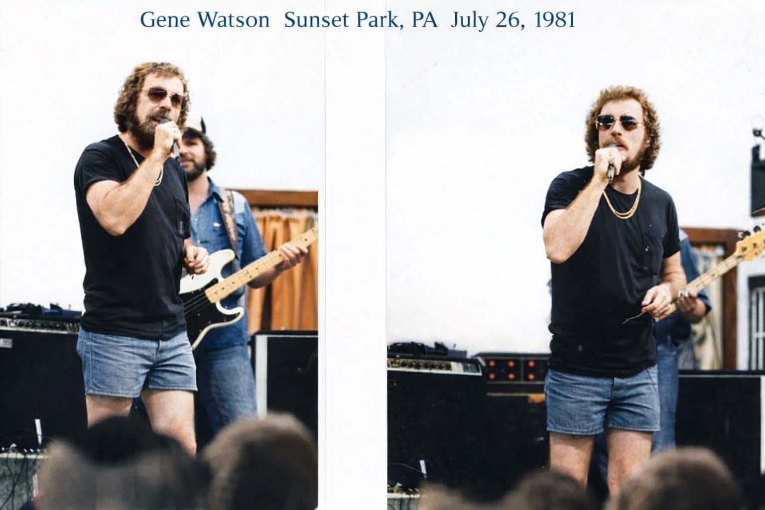 The helicopter descended into a pasture near the stage, where music drifted across the field. The band was already playing, with Larry Booth stepping in on vocals to keep the audience engaged. There was no time to change, no moment to pause. Wearing shorts and a T-shirt, Watson ran straight from the helicopter to the stage.