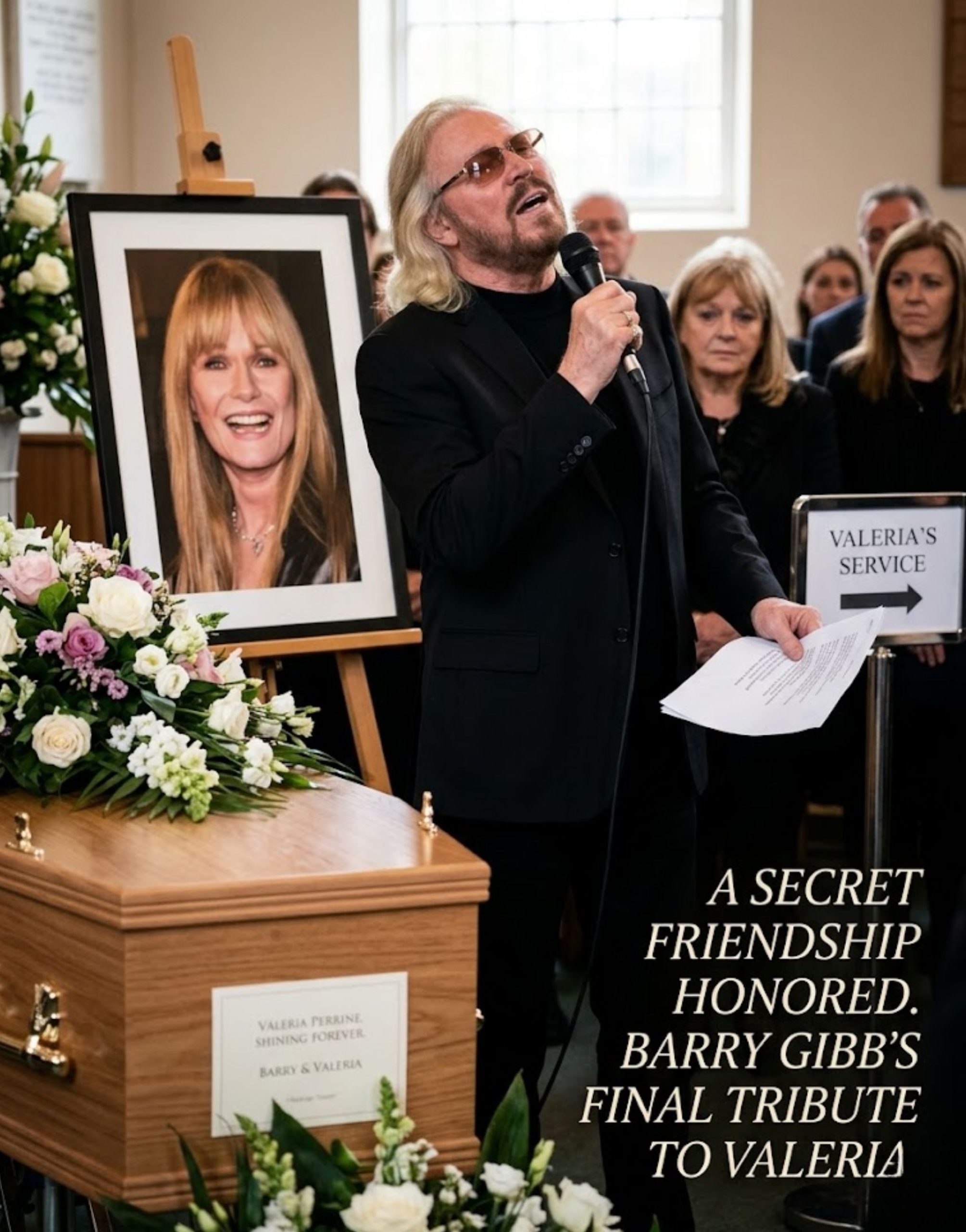 The image remains powerful: Barry Gibb standing beside Valerie Perrine’s coffin, offering a quiet tribute that brought a nearly forgotten friendship back into the light.